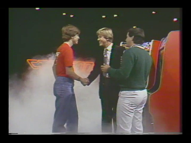 In the Playoff on Berzerk it was a bit closer but he pulled it off again with 1,570 points, winning an Asteroids Deluxe video arcade game, Apple IIe Computer and the chance to play Larry Wilcox, star of the TV show "CHiPs", just for fun. Wilcox had the edge, having played the game almost constantly for hours before, but David put up a great fight, trailing Wilcox by just 300 points.