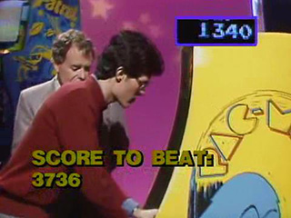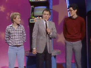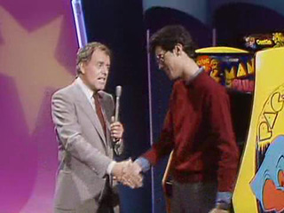 James had a rocky start - his opponent Steve Jones took the lead on the first game - Q*Bert by 150 points but James took the other 2 games (Disc of Tron and Cliff Hanger). He played the Name the Game Board and won the overall winner Grand Prize. He did not score enough points to win the Grand Prize - a Moon Patrol Video Arcade Game.