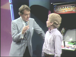 Somehow I still prevailed, due mostly to my Super Cobra prowess. In the bonus round where I played Space Invaders (already an oldie by then) for the grand prize of a Buck Rogers game, I suffered one of the toughest lessons of my life. With 14 points still to score and a few seconds left, I got hit. There wasn't enough time to come back with the next ship and hit the one or two more aliens that I needed. Geoff seemed just as disappointed as me. 'Come on Eddie......Oh Eddie! Not now!' During the closing credits, you can see my friend saying '14 points!' ... It has remained one of my favorite stories to tell ... The tape also captures a peculiar period in the history of my hairstyle. Thanks Starcade!"