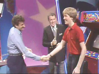 Mark was a contestant on a special Cliff Hanger show. Cliff Hanger was a brand new laser disc game when this show was taped and when the show was over, Mark took home his very own Cliff Hanger game. We invited a previous STARCADE! contestant Marcelo Hassmer to come back and play the Cliff Hanger game during this special show ... so all the Starcaders could see the fair damsel rescued. When the show ended, Marcelo did just that - or at least, Cliff, the suave international hero, saved the princess with an assist from Marcelo.