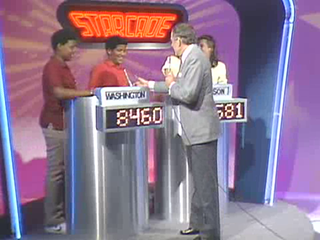 Korey & Kerry Washington appeared on a twin show. Their opponents were the very energetic twins, Amy & Julie Levinson. These girls did not stop for a moment. Korey & Kerry may have been distracted by the girls' high energy -- scoring less than the girls on every game they played.