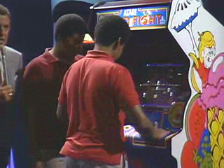 The Tryout form said, "I think the most interesting about me is that I love to be in the spotlight and to 'sell' myself to people in terms of personality." We can assume Korey wrote that since Korey completed the Tryout form. He went on to say, "My game playing ability is about 5% above average on most games." He (Korey) elaborated on his typed bio, "... At the present time, I have no world records, but I hope to get one soon on **STARCADE**!!!" Kerry's handwritten bio said, "I first saw STARCADE on a Monday after my friends told me about it ... I must admit that I was rather pessimistic when my brother wrote a letter to STARCADE but to my surprise we both made it and I'm glad to be here."