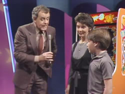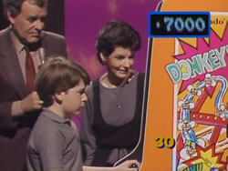 It was neck and neck with the two teams scoring pretty much the same thing on the first 2 games, then they played Star Wars - Damon scored 21,198, almost twice his opponent's score. Game on! Damon & Vicky prizes included the Bionic Chair, Spectravideo Computer, and a collection of jewelry (which Damon tells us he sold to buy a Dragon's Lair video arcade game).