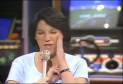 During Tryouts, Elaine told us, "I haven't won big at the horse races, haven't won Reader's Digest or Publisher's Clearing House Sweepstakes ... I'm giving STARCADE! a chance!"