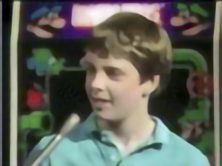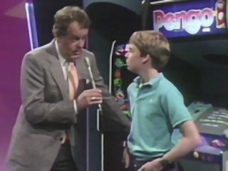 He chose to play Q*Bert and did not make the score he needed to win ... but he took home some major prizes anyway ... a Texas Instruments Computer for being the Overall Winner, a ColecoVision for naming 4 games on the Name the Game Round and a Scisys Sensor Chess for choosing the Mystery Game, Dorodon. You could hardly call him a loser.